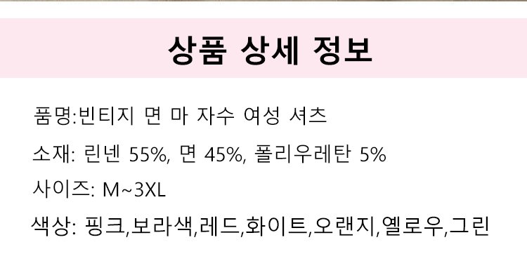 스타일리시한 빈티지 자수 셔츠 여성 패션