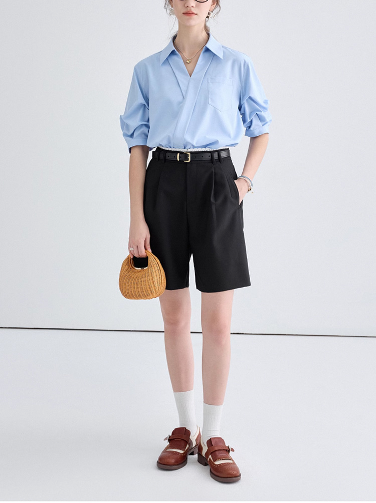 다양한 컬러의 여성용 V넥 반소매 셔츠