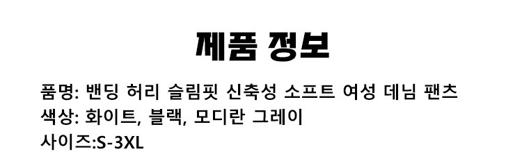 밴딩 허리 슬림핏 신축성 소프트 여성 데님 팬츠