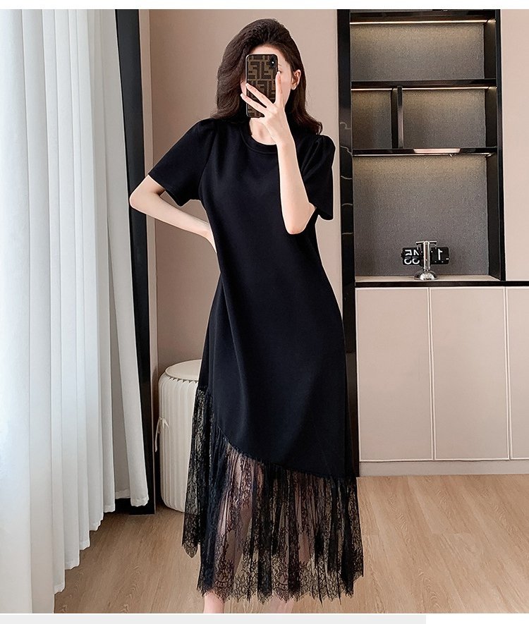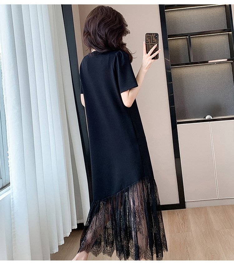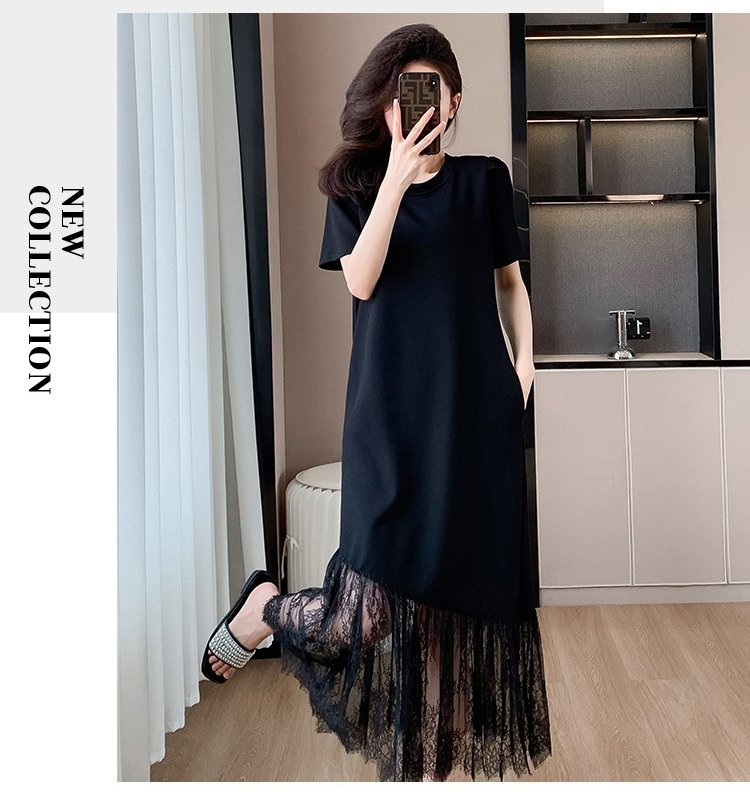 여성 모델이 착용한 레이스 루즈핏 원피스